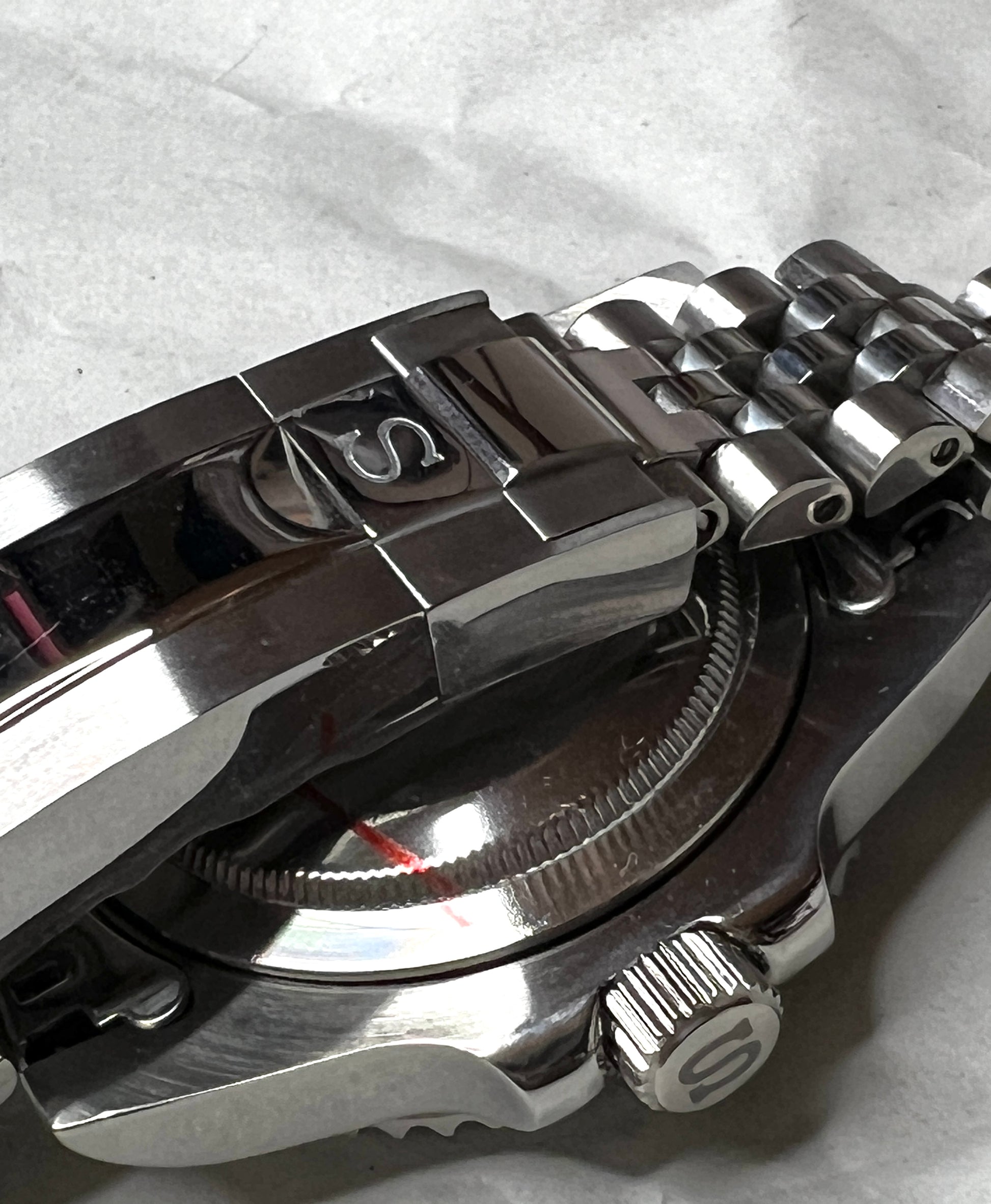 belt : Double lock jubilee Bracelet with glide lock mechanism .*engraved s with etching,*fits up to 22.0cm
